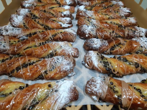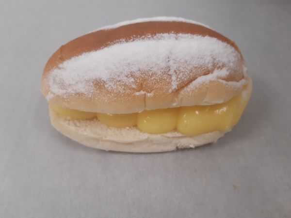 Zacht broodje gevuld met banketbakkersroom. Afgewerkt met poedersuiker.