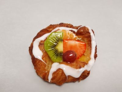 Afgewerkt met vers fruit,abrikozen gelei en fondant