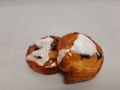 Vulling van banketbakkersroom en rozijnen.
