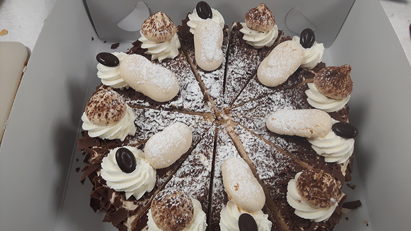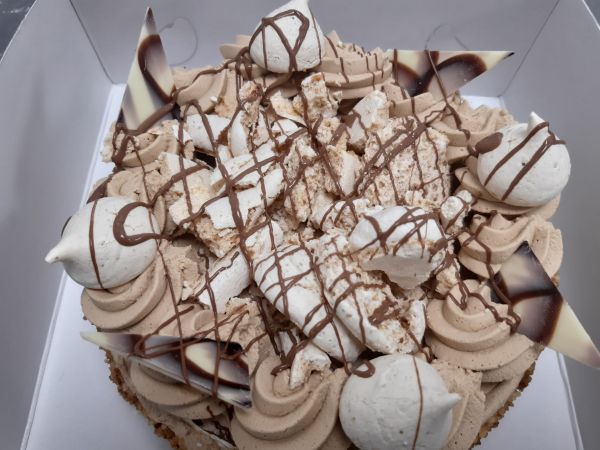 2 hazelnoot schuimplakken gevuld met mokka room en zoute karamel.